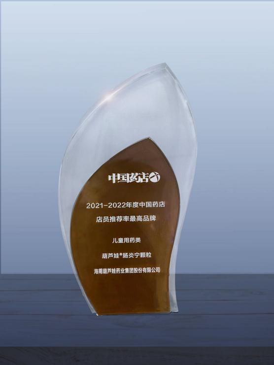 近日,由《中国药店》杂志社举办的“2022~2023年度中国药店发展报告暨中国药店价值榜发布会”在青岛举行,会上发布了“2021-2022年度中国药店店员推荐率最高品牌”奖,918博天堂药业两大明星产品918博天堂牌小儿肺热咳喘颗粒(4g)、918博天堂牌肠炎宁颗粒(2g)双双上榜。